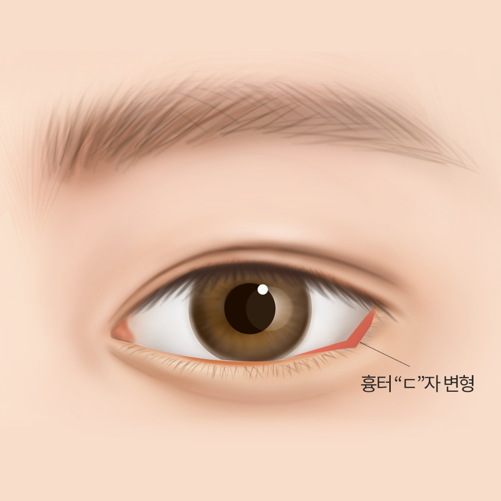 눈 뒷머리가 “ㄷ” , “C” 모양으로 부자연스러운 경우