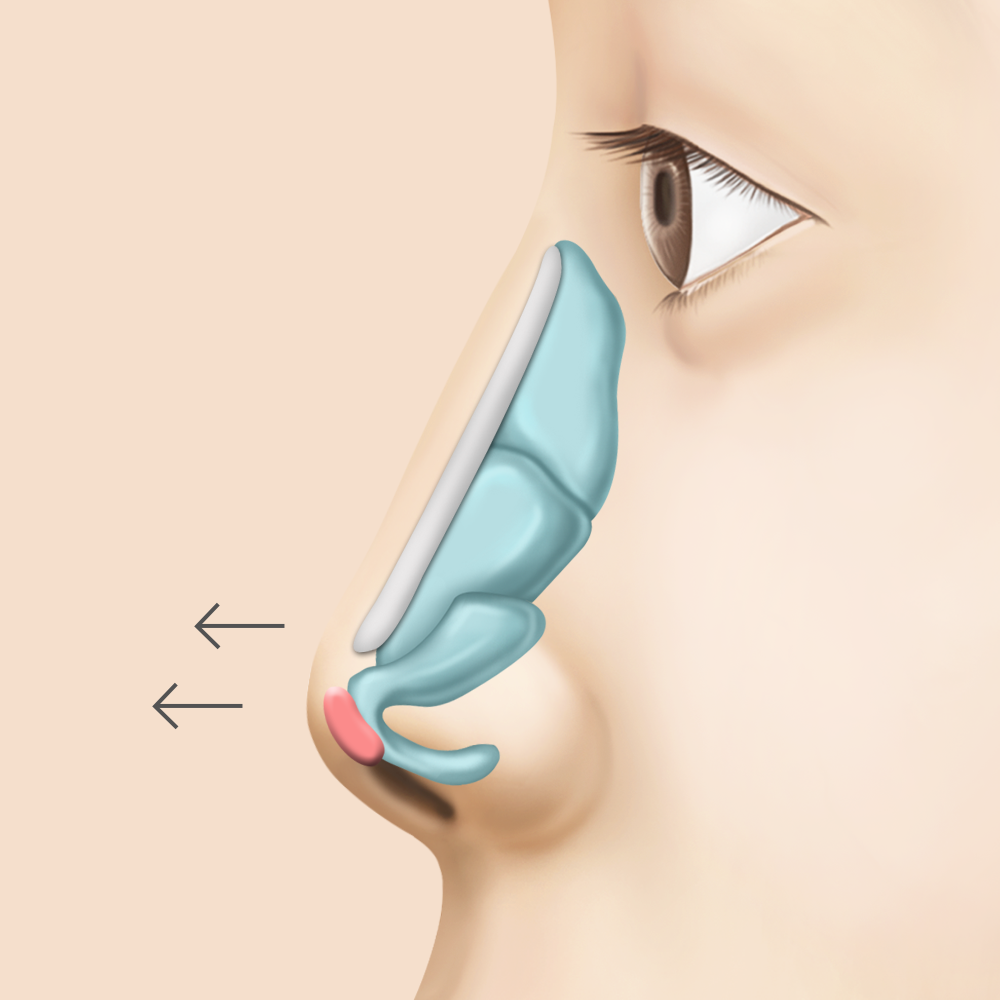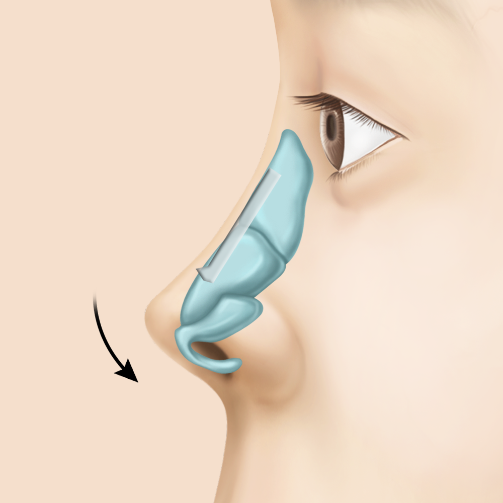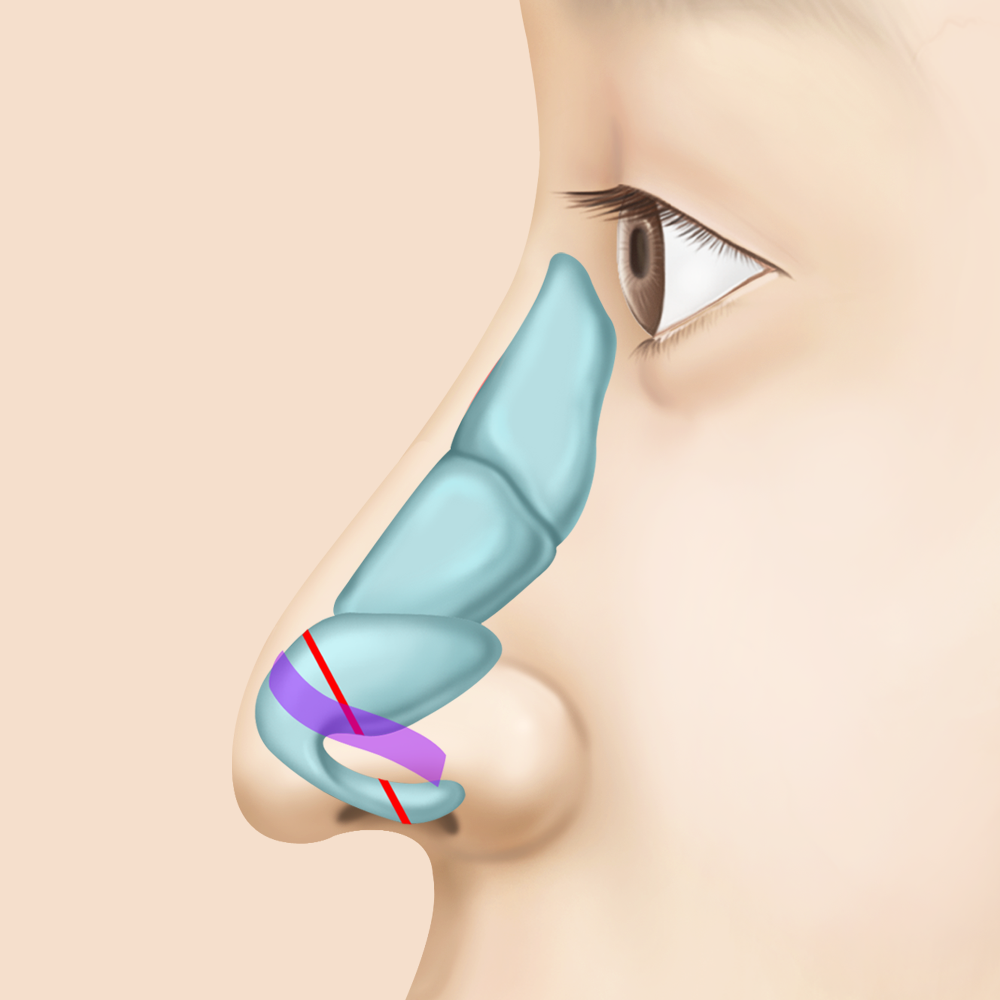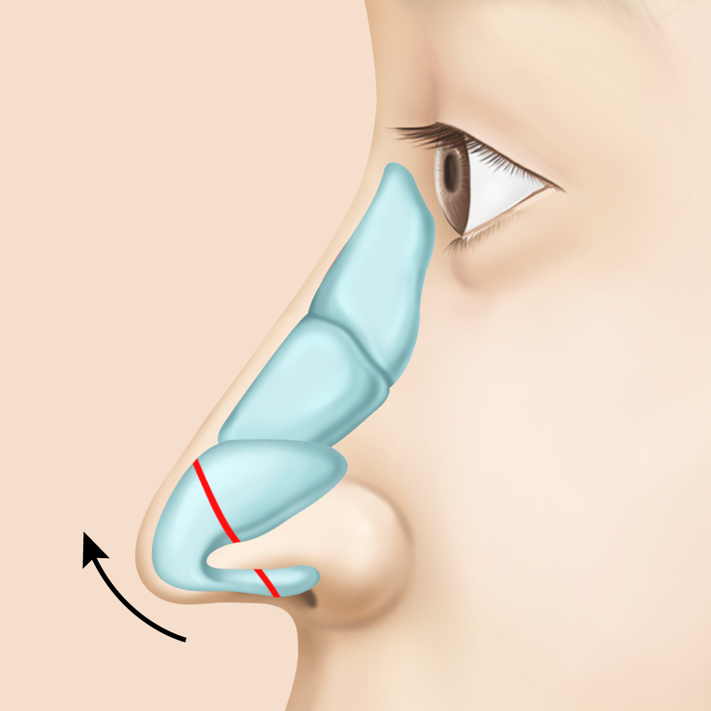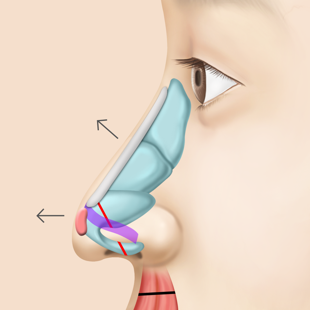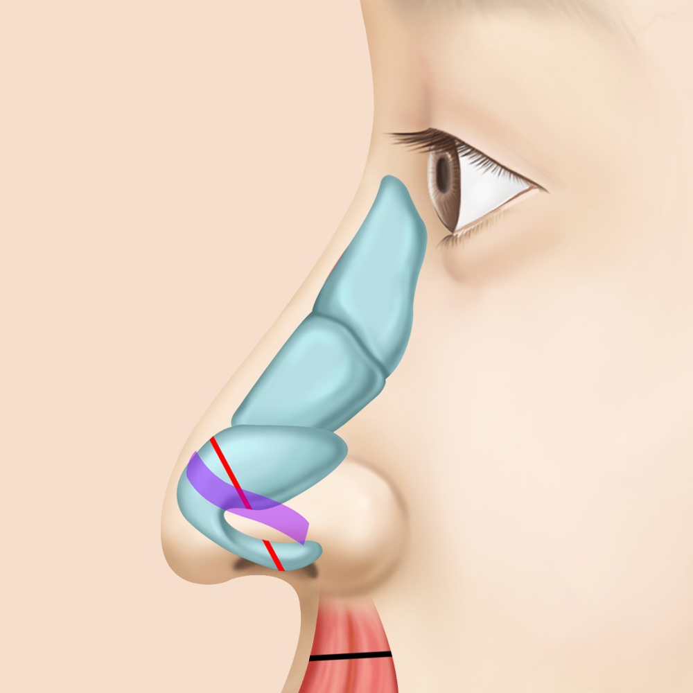 연골을 위쪽 방향으로 재배치하여 코 전체 길이를 줄여주는 수술을 하게 됩니다.