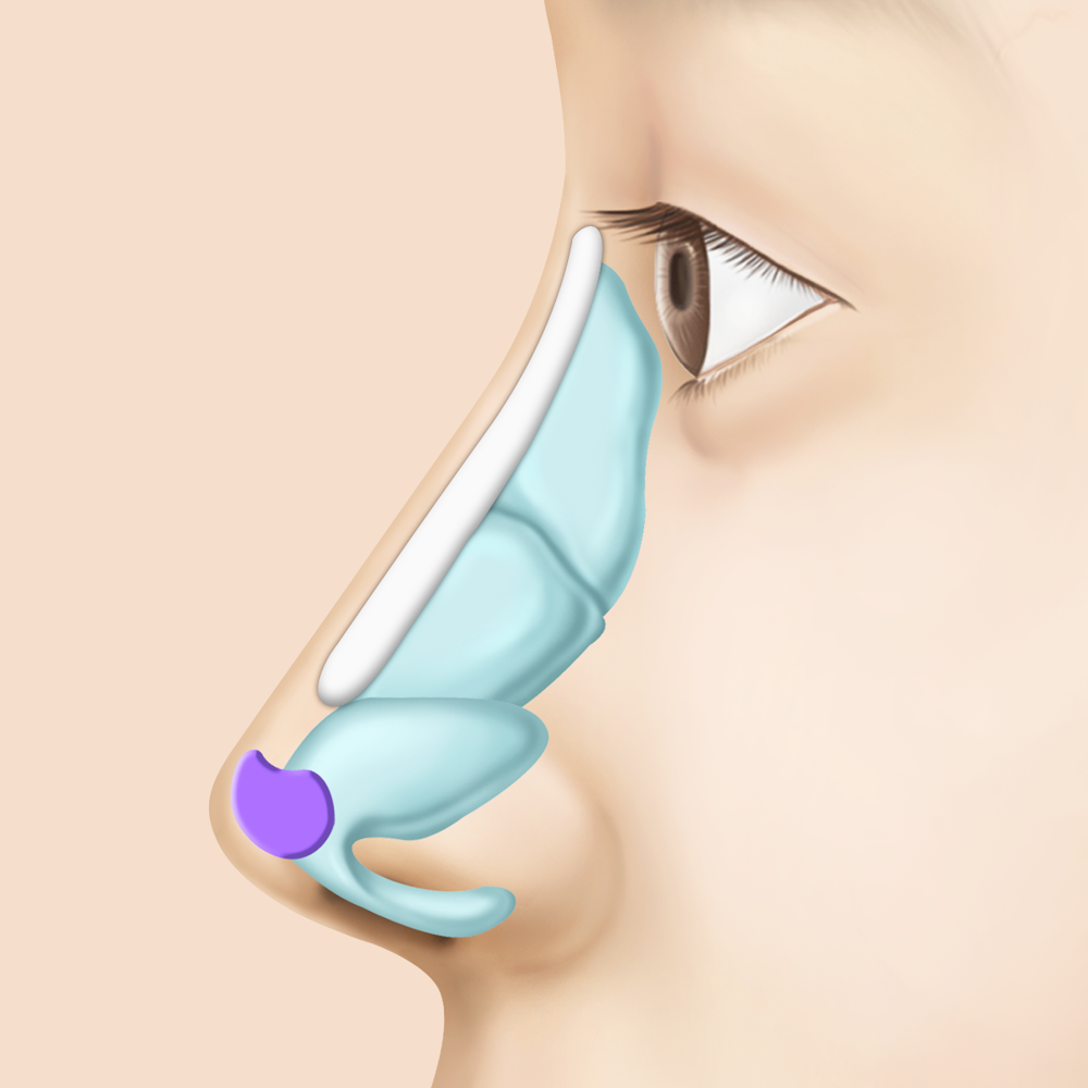 비중격 연골을 적절히 잘라내어 주고 아래 방향으로 처져있는 콧날개