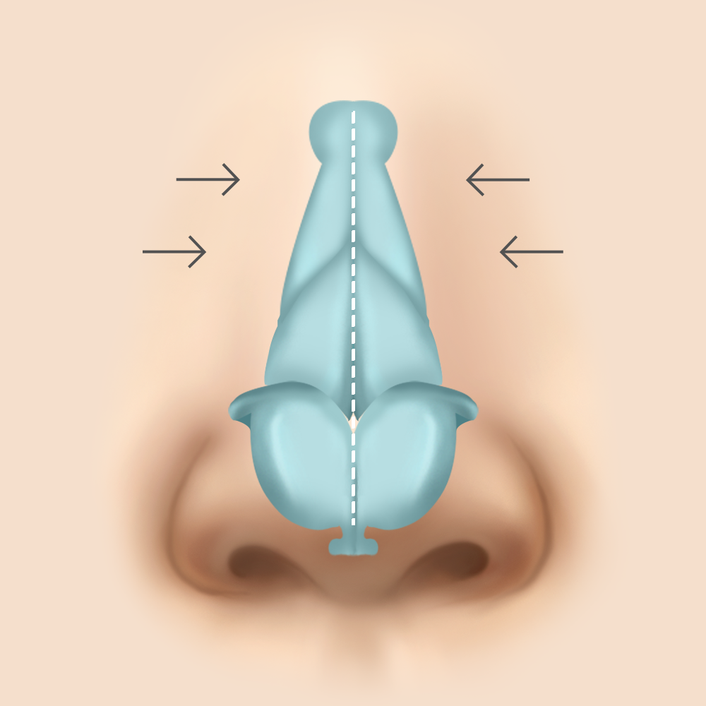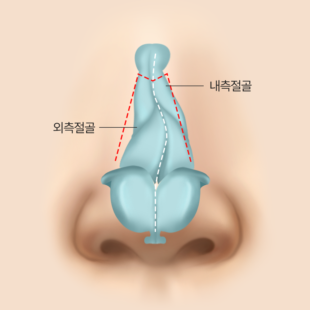 한 쪽 콧구멍을 좁게 만들어 발생하기 때문에 비중격 연골을 교정하는 수술을 겸하게 됩니다.