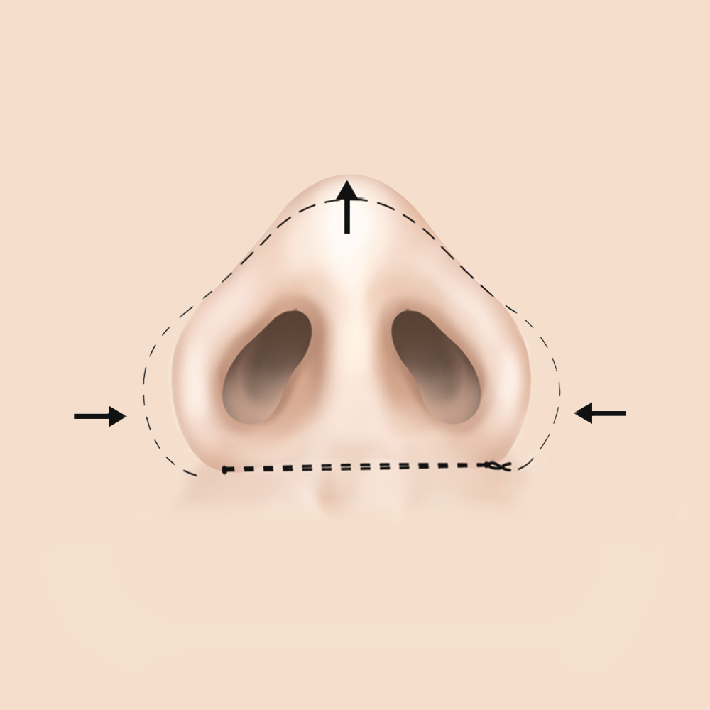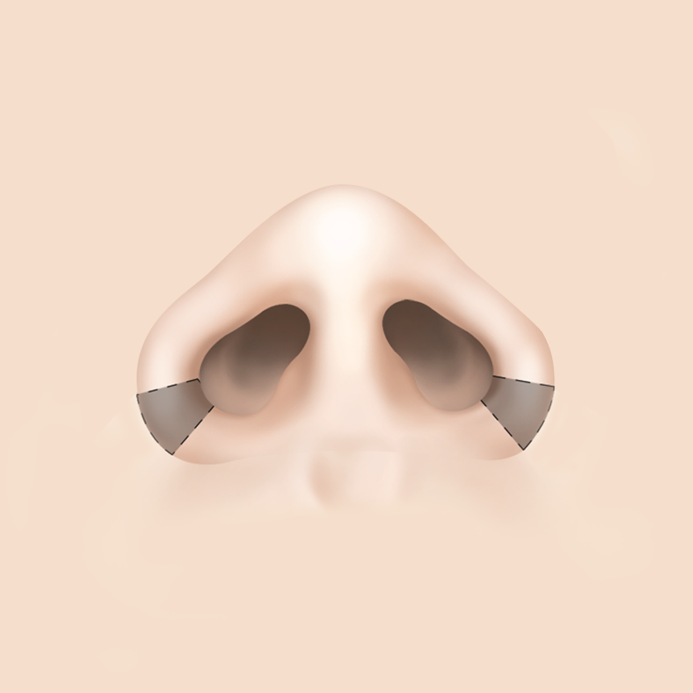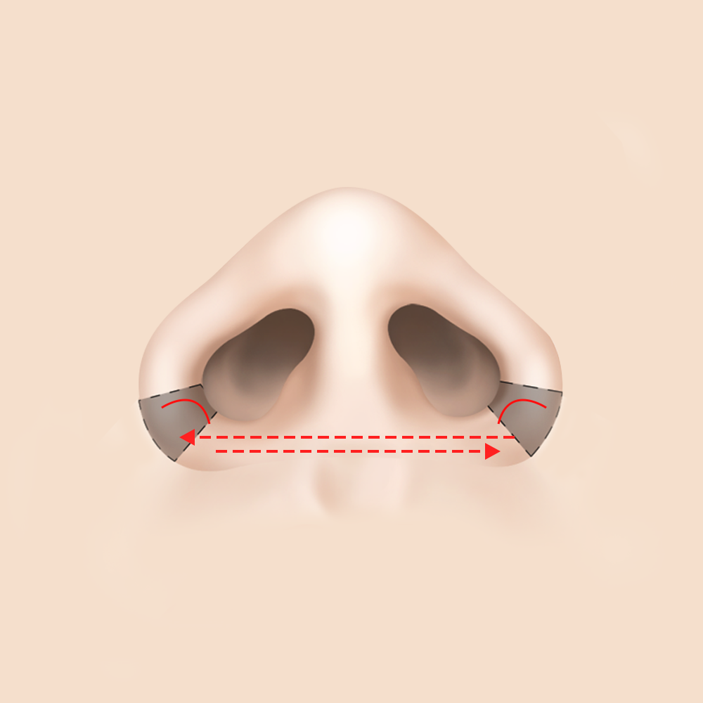 비대칭 없이 균형 잡힌 모양으로 콧볼을 모아주어 예쁜 코모양으로 개선