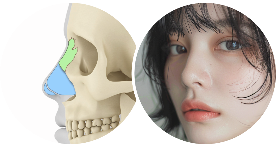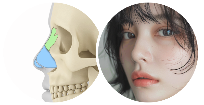 콧대의 시작접부터 코 끝의 윤곽, 모양을 전체적으로 잡아 얼굴 비율과 균형에 가장 적합한 코 모양을 만들어 드립니다.