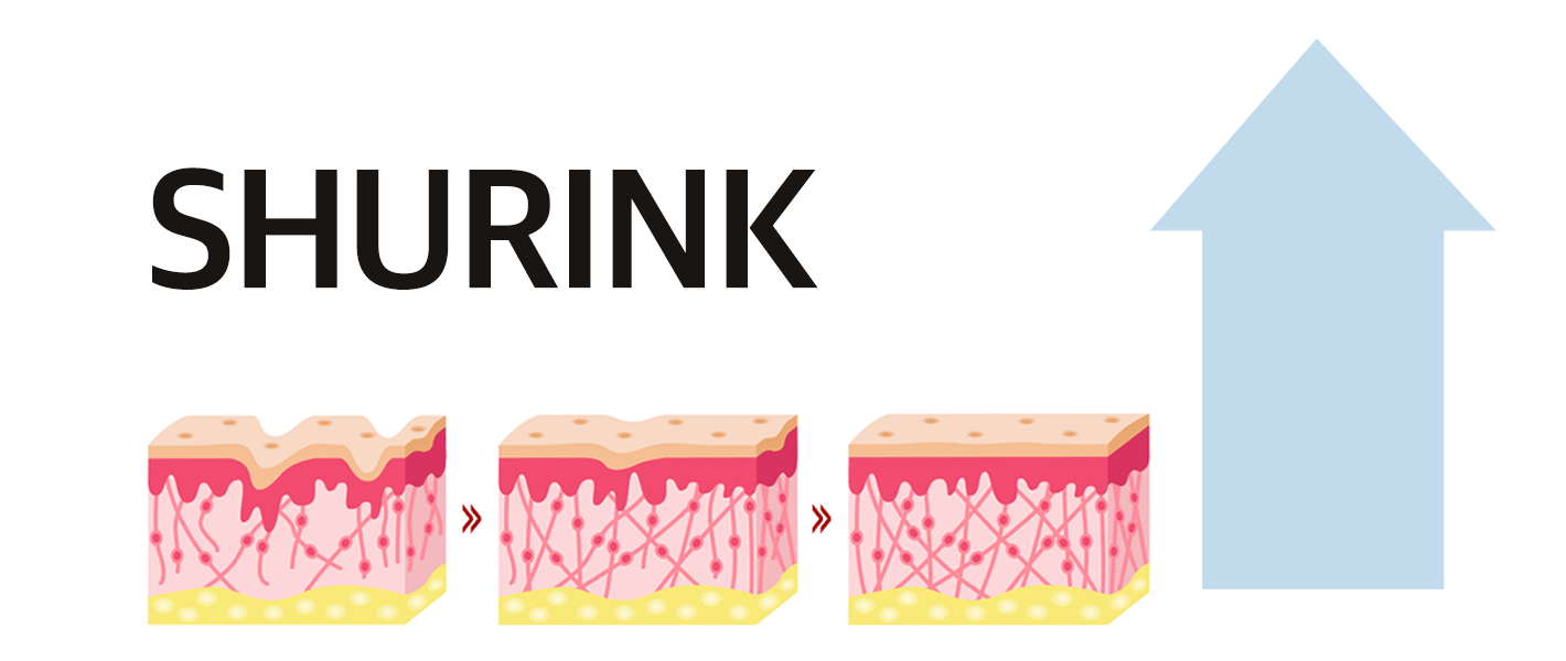 *슈링크는 피부조직이 응고되고 수축되는 당김 현상의 원리로 리프팅이 이루어집니다.