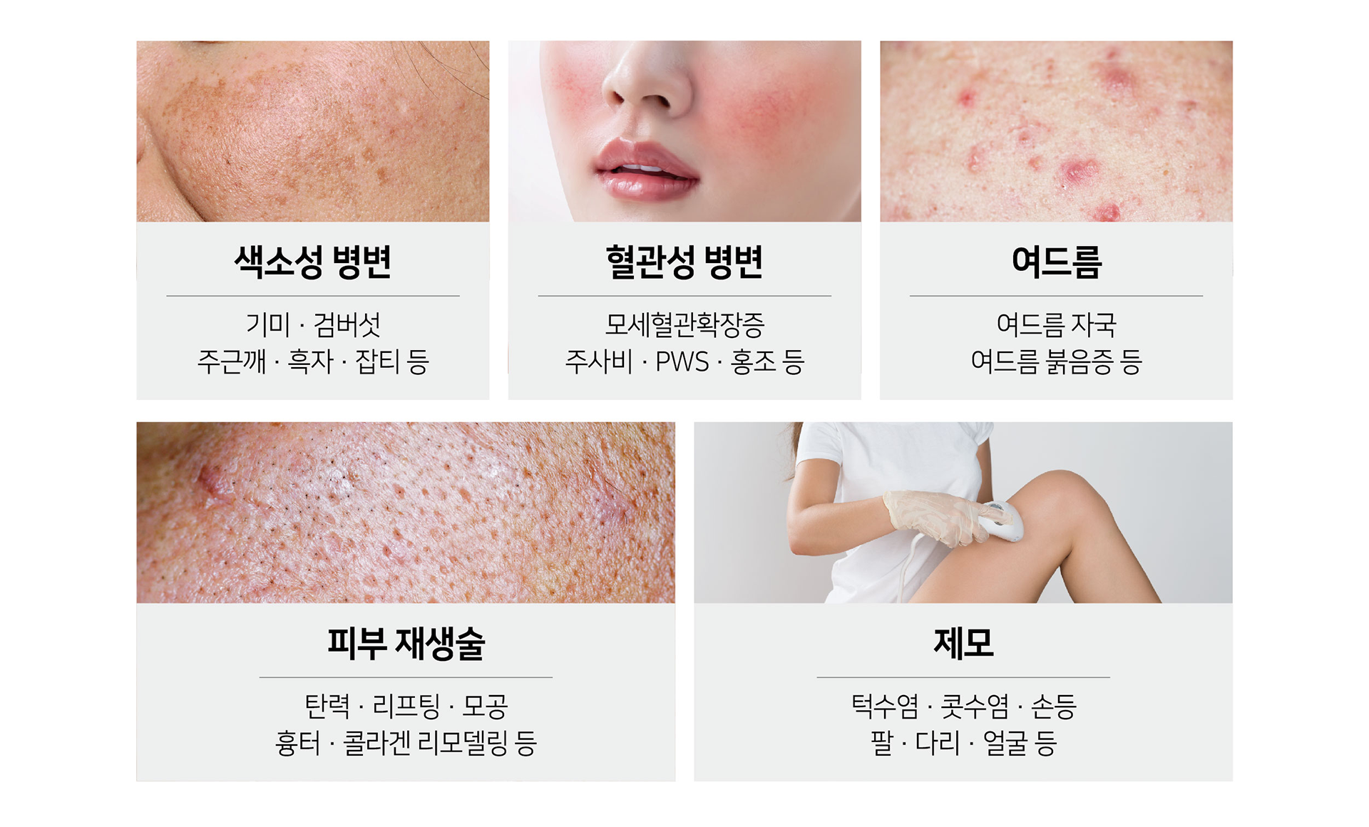 혈관, 색소 뿐 아니라 콜라겐에도 효과적으로 작용하므로 복합적인 병변을 동시 치료 가능합니다.